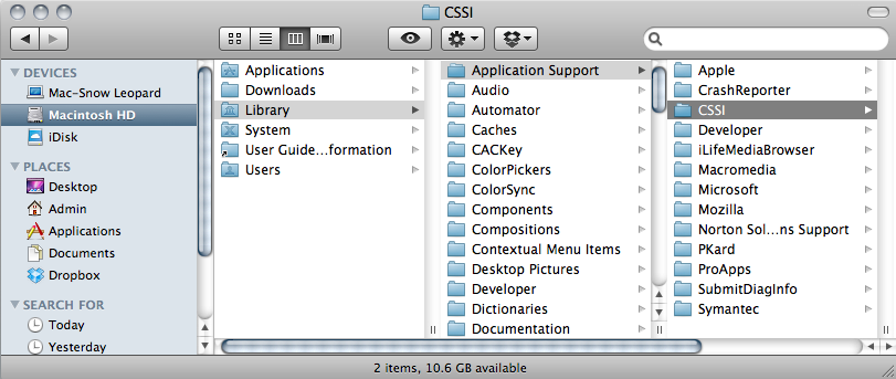 Hard disk / Library / Application Support /