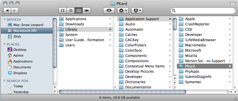 Hard disk / Library / Application Support / PKard