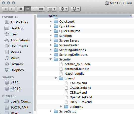 Hard disk / System / Library / Security / tokend / uiplugins /